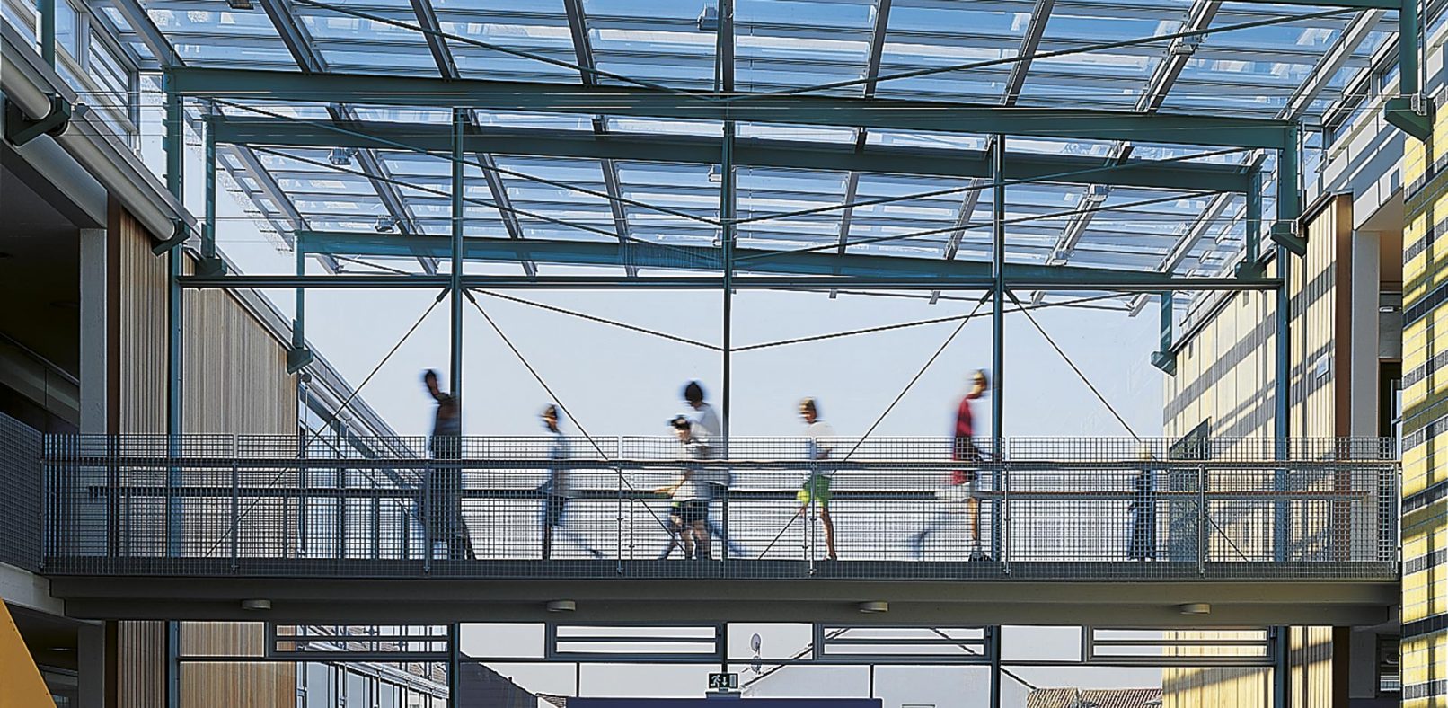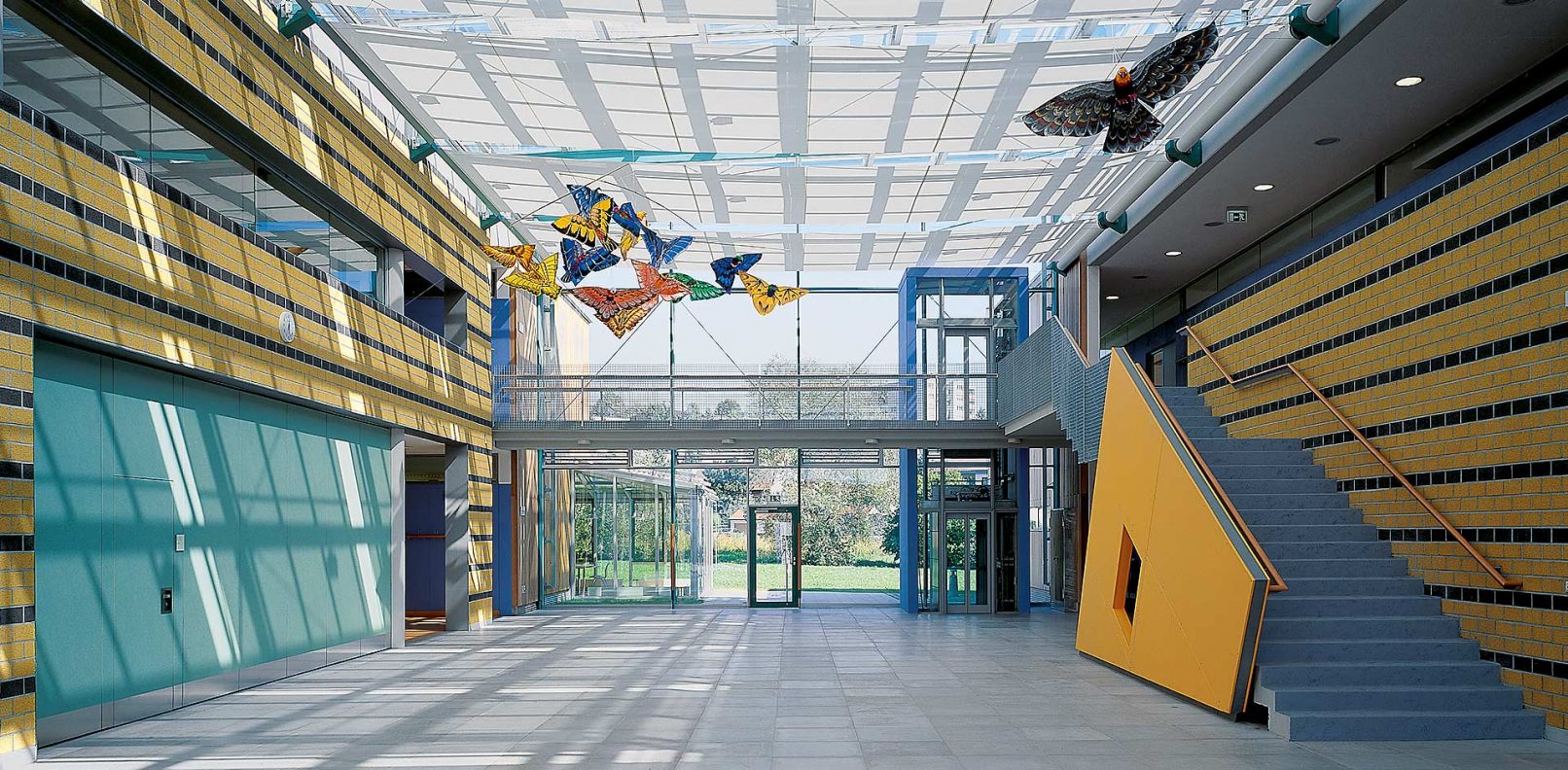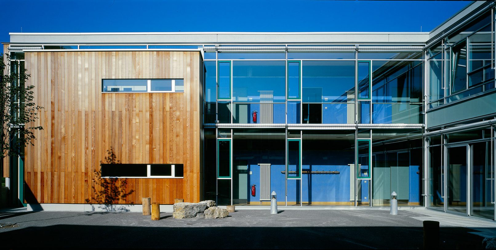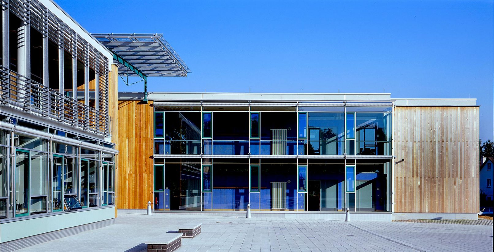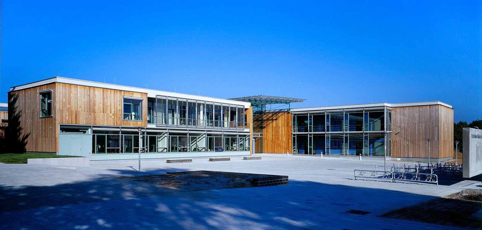 - Insgesamt ist dieses moderne Schulgebäude beispielhaft durch seine Kostenorientiertheit bei gleichzeitig optimaler Funktion, viel Transparenz und einem sehr angenehmen, warmen Gesamtbild.