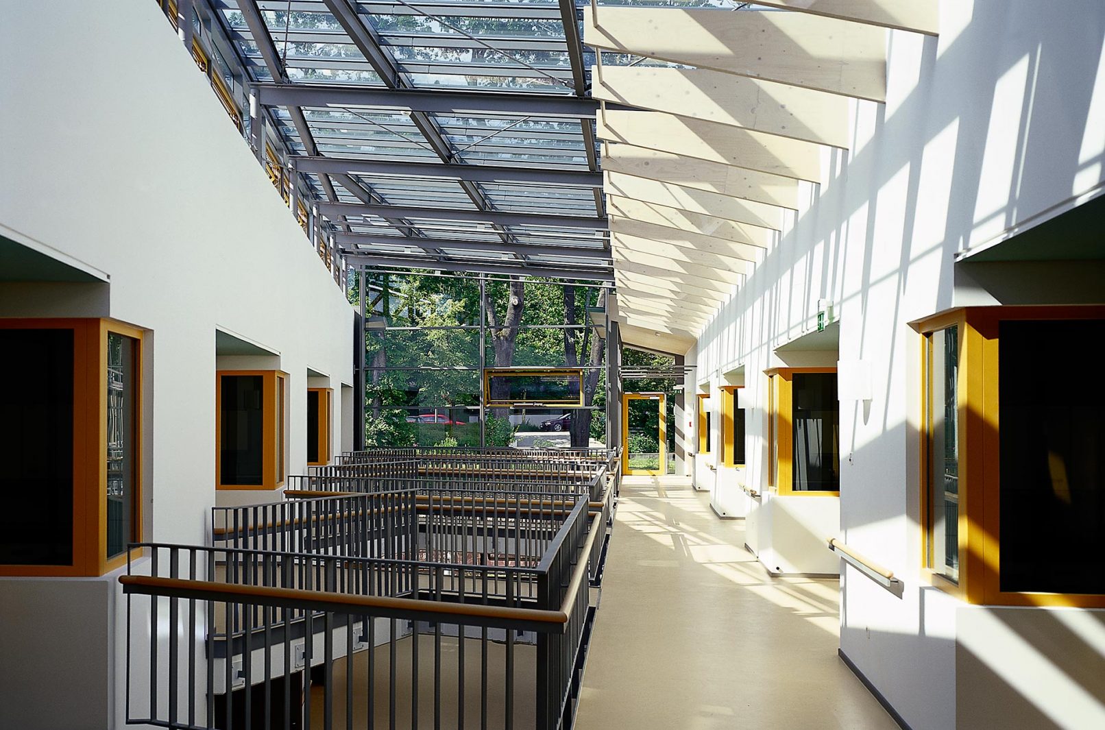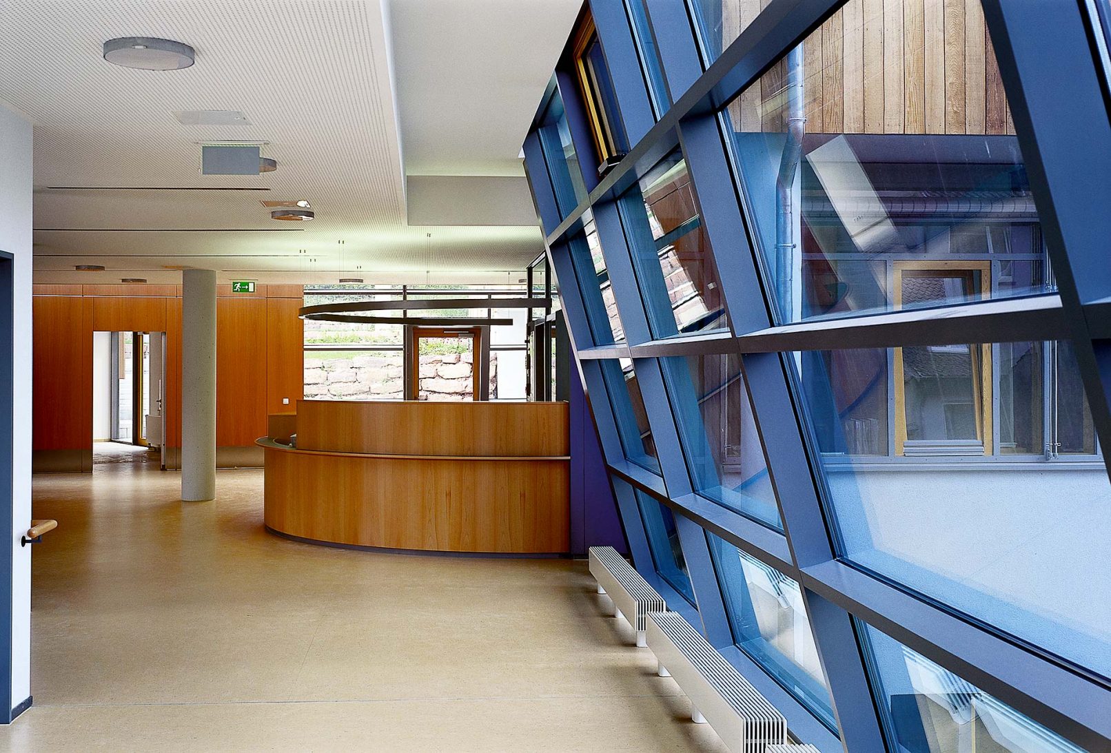 - „Mühelos überwindet das Gebäude die bestehende Hangsituation, indem es in allen Geschossen den Außenraum ebenerdig zugänglich macht.