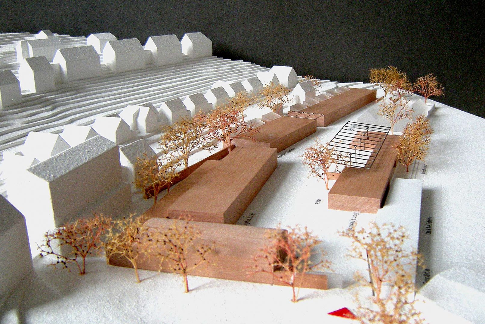 - Der große Vorteil besteht hier in einer einladenden und räumlich interessanten Verschränkung von Bauhof und Freifläche Sport. Dazu gehört auch die vorgeschlagene Baumreihe als vermittelndes Grünthema.